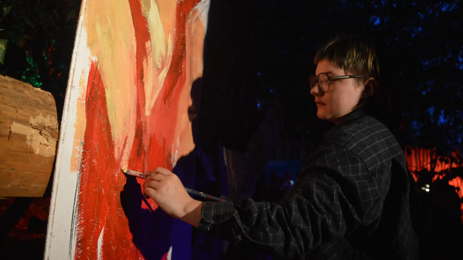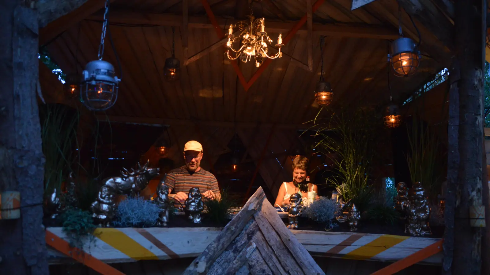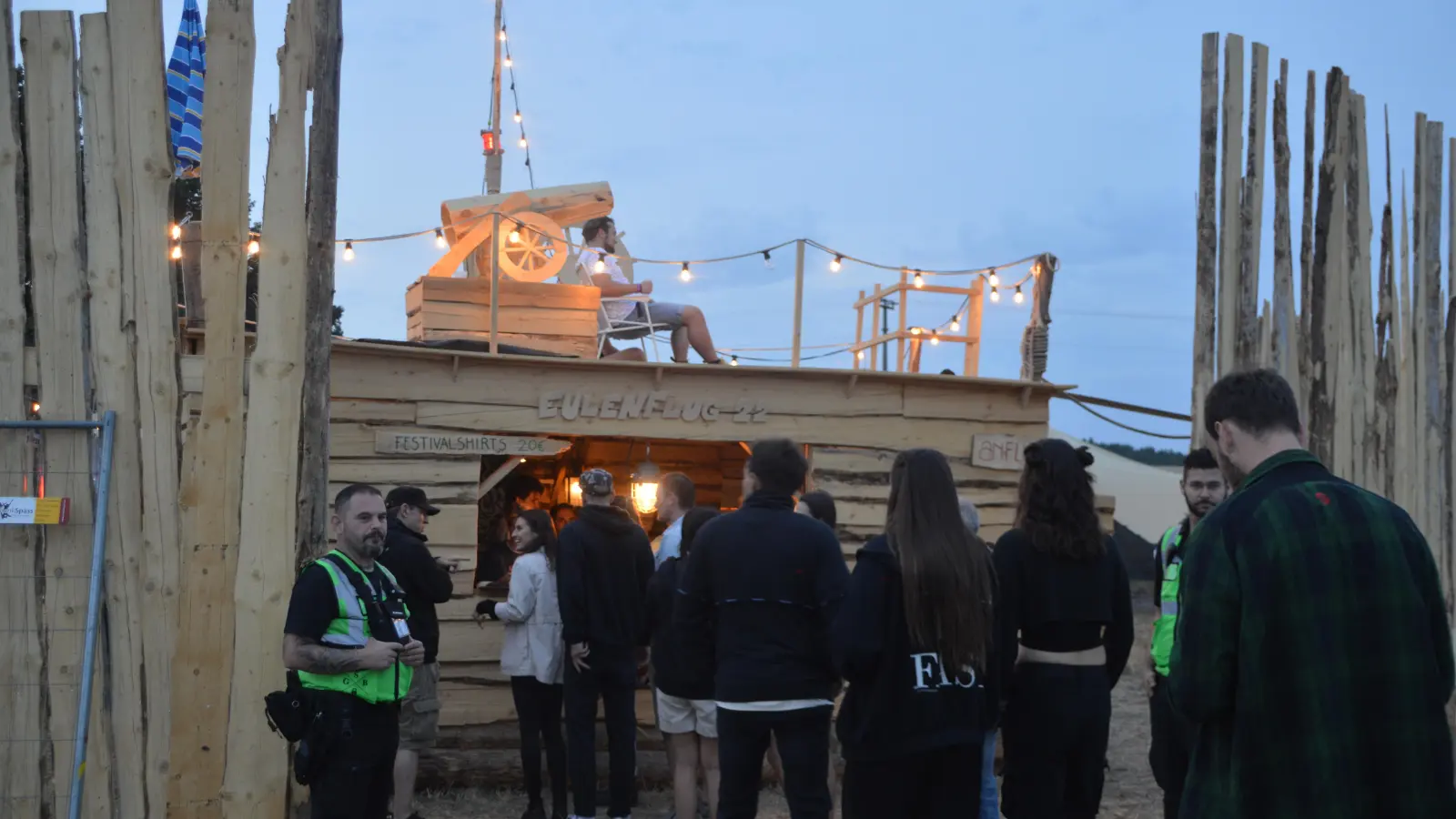 Dem Grenzkunst-Verein ist es wieder einmal gelungen, ein Kleinod aufzubauen – voller silberner Gartenzwerge, Glitzer, bunter Lichter und freudestrahlender Gesichter. Welch liebevolle, zeitaufwendige Arbeit bis ins kleinste Details dahintersteckt, lässt vor allem die Bühnen-Gestaltung erahnen. Hier leuchten Lampions am Zelthimmel. Dort erwacht eine hölzerne Eule, stellvertretend für den Festivalnamen, zum Leben. Das Zauberwäldchen wird in den buntesten Farben angestrahlt. Künstler malen am Rande des Weges live an ihren Bildern. Sogar die Bar wird zum designerischen Höhepunkt. Industrielampe trifft Orientteppich. Eine grandiose Atmosphäre.