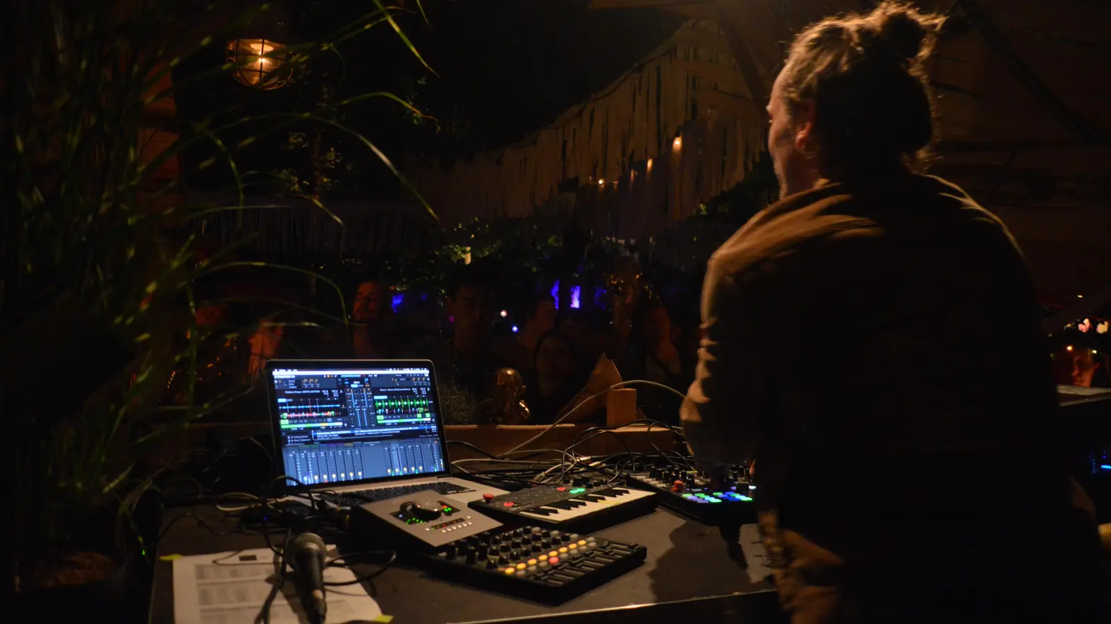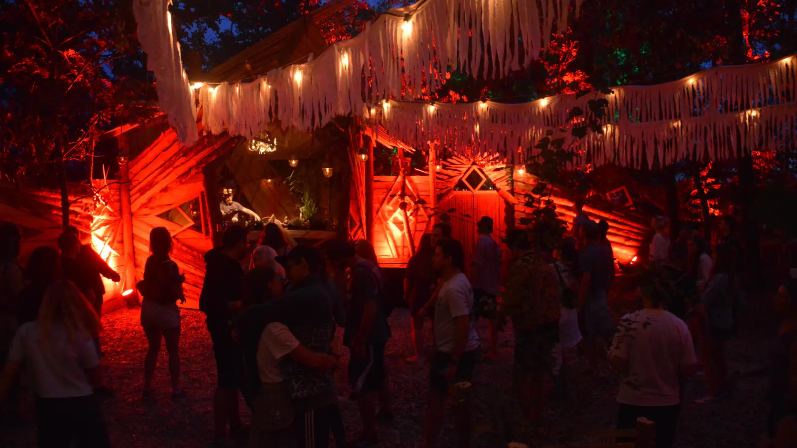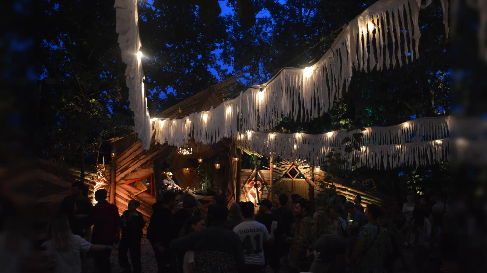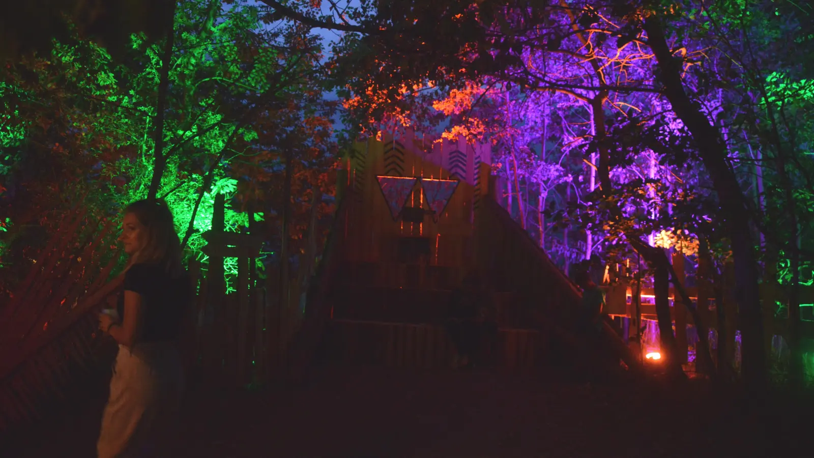 Oder El Mundo und Zazou aus Berlin: Klavierparts werden von sanften Basslinien umgarnt, Zazou spielt Gitarre und singt, El Mundo schraubt live die Beats. Es ist Wohlfühlmusik zum Abschalten, weltoffen, mit viel Gefühl – Kopf aus, schwelgen in einer besseren Welt. Eine Zwei-Mann-Band. Weltmusik trifft auf Elektronisches. Als Monkeybrain sein Set, wie es bei ihm Tradition ist, mit dem Titelsong von König der Löwen beginnt, schwebt ein Hauch Filmmusik durch den beleuchteten Wald.