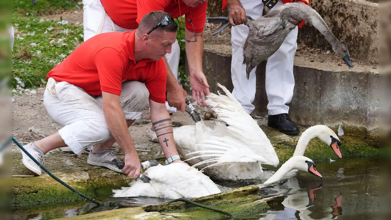 In Oxford werden wie jedes Jahr die Jungschwäne auf der Themse gezählt. (Foto: Jonathan Brady/PA Wire/dpa)