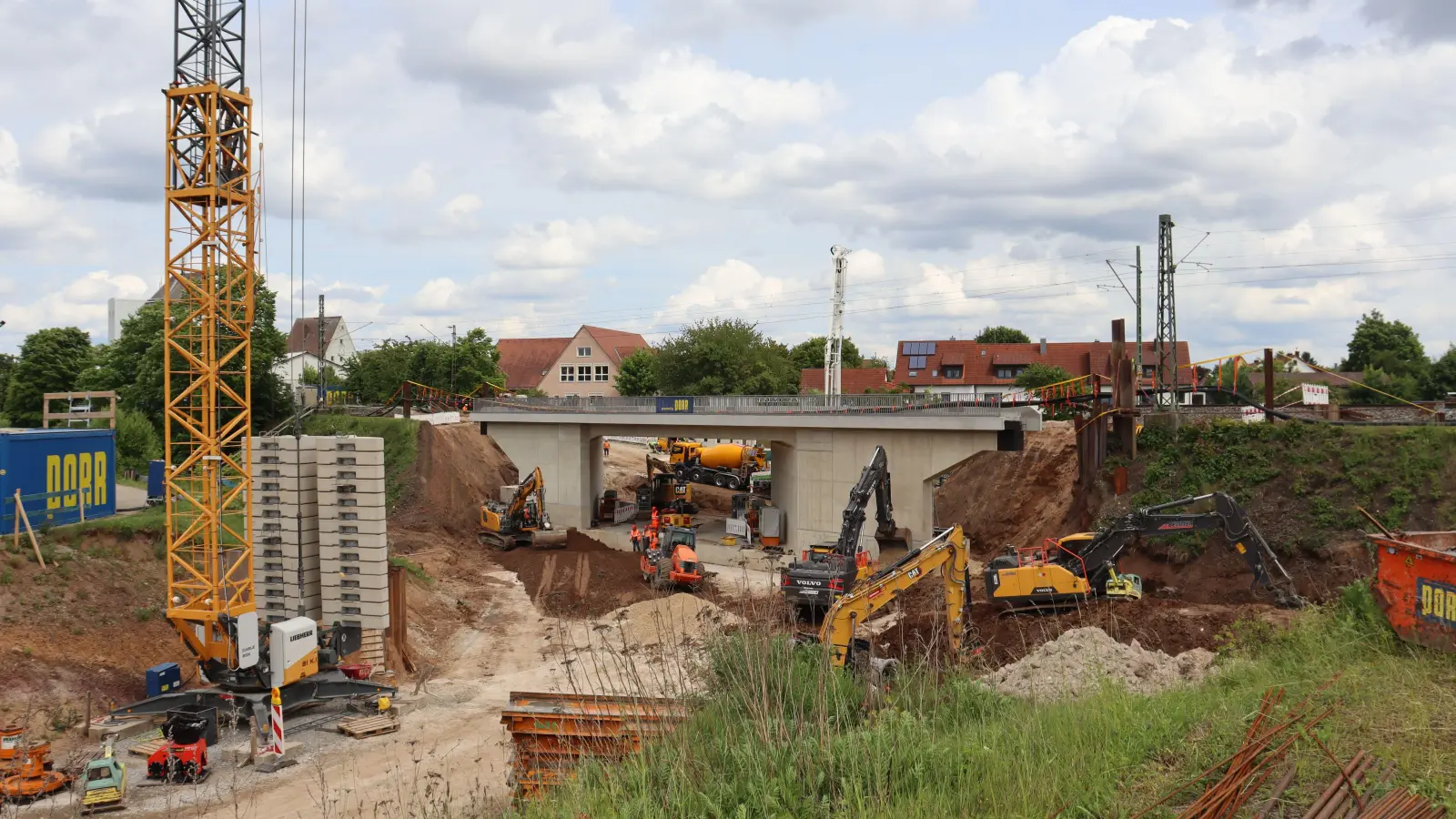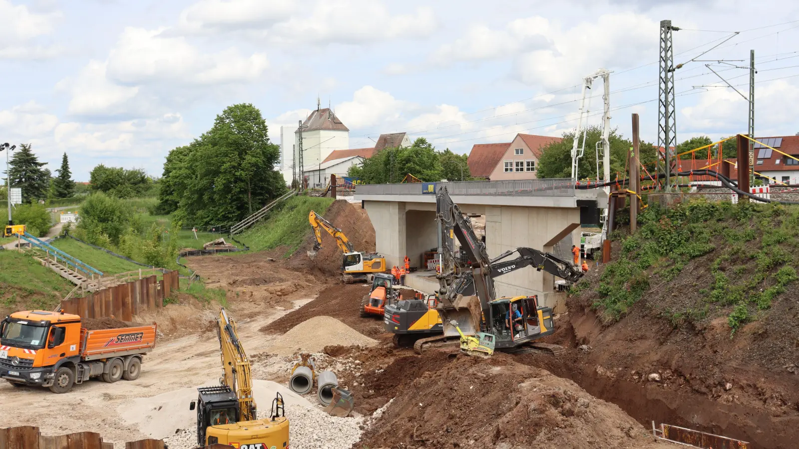 Doch was ist überhaupt geschehen? Fest steht: Am Mittwochvormittag hätte der Einschub der Stahlbetonbrücke an der Caspar-Othmayr-Straße beginnen sollen. Das 21 Meter lange Bauwerk war in den vergangenen Monaten nördlich der Bahnstrecke errichtet worden. Nach Beginn der Totalsperrung bauten Arbeiter die Gleise zurück und trugen den Bahndamm ab. Die Brücke sollte dann in die entstandene Baugrube wandern und die Lücke füllen.
