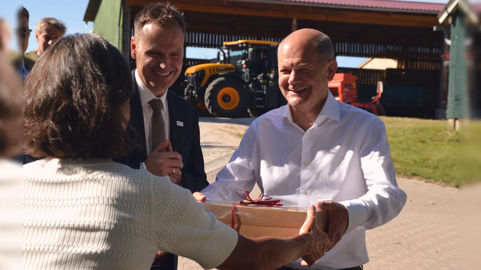 Bundeskanzler Olaf Scholz (SPD) war zu Besuch im Landkreis Neustadt/Aisch-Bad Windsheim. Der Kanzler stattet dem Biobauernhof von Thomas Fleischmann im Markt Erlbacher Ortsteil Mettelaurach einen Besuch ab.