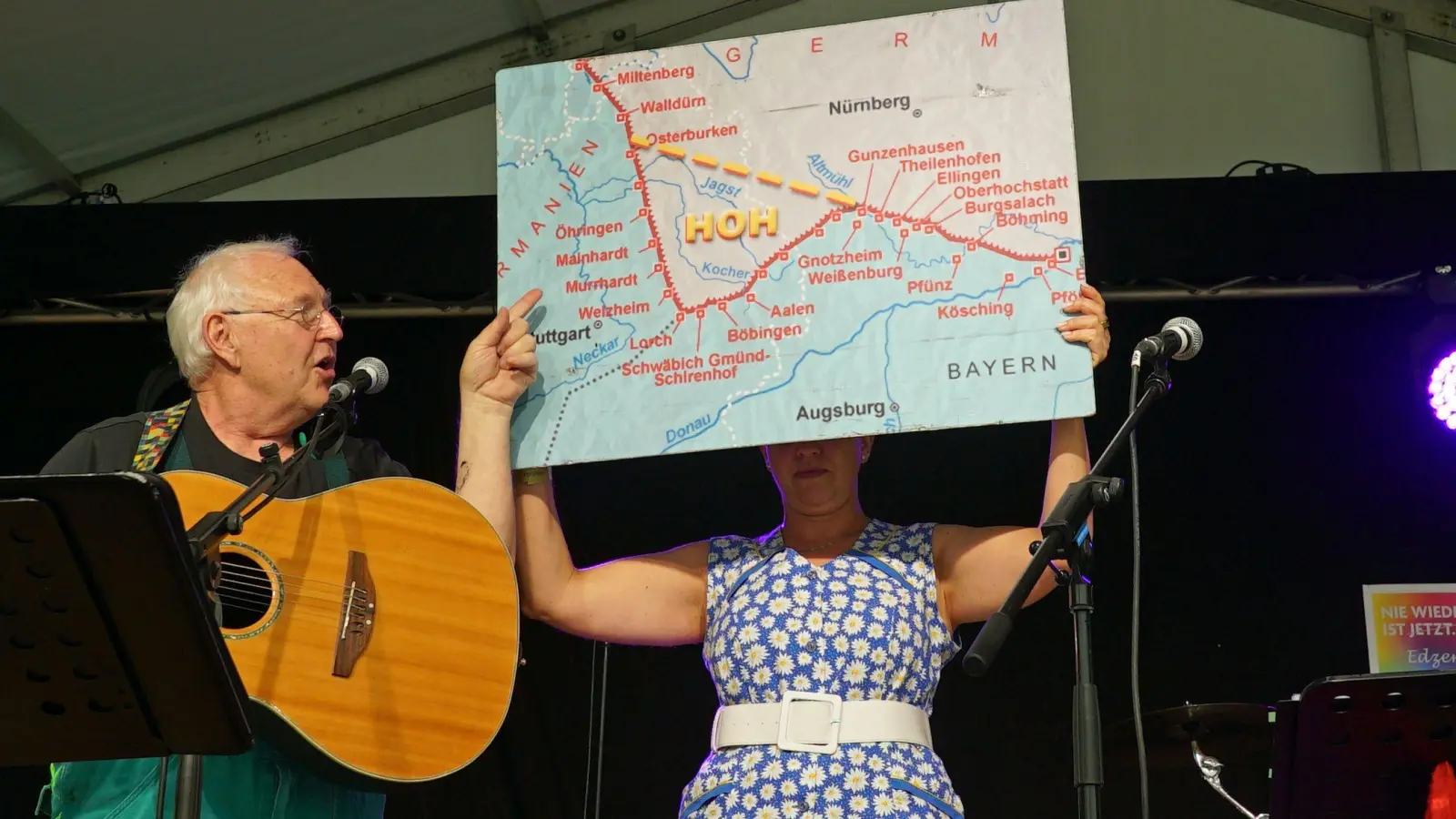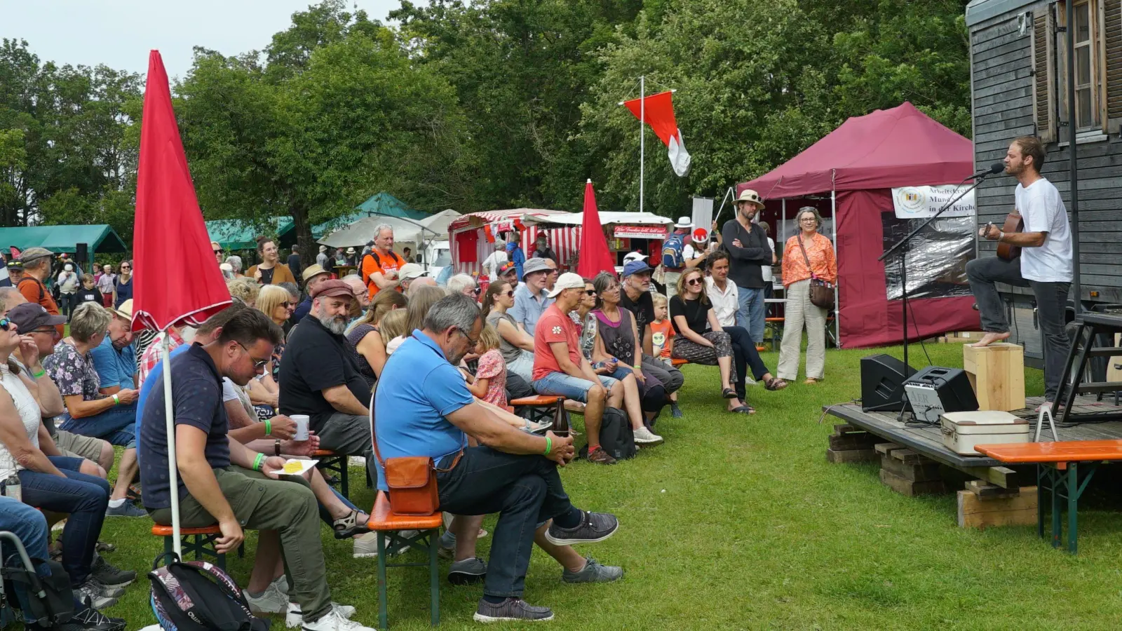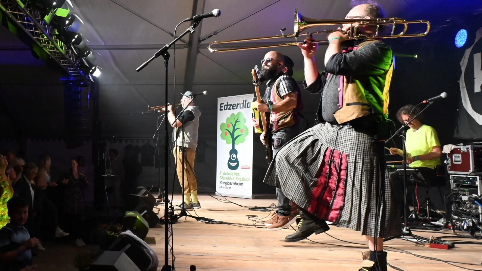 „Bassd”: Den Ausdruck fränkischer Begeisterung, man hört ihn oft am Wochenende auf dem Edzerdla, dem Mundart-Festival in Burgbernheim. Das Wetter passt. Das Essen passt. Die Musik passt. Im Festzelt und auf der Streuobstbühne ist die Stimmung prächtig entspannt. Man muss „Edzerdla” nicht gleich ein „Mundart-Woodstock” nennen, ein bisschen was davon hat es aber schon. Eindrücke von der dritten Ausgabe.