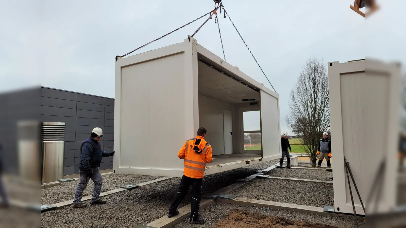 Das Lernen ist den Mädchen und Jungen der Grund- und Mittelschule Burgbernheim-Marktbergel an diesem Mittwoch schwer gefallen. Die Ablenkung war einfach zu groß: Schließlich fliegt nicht jeden Tag ein Container über die Turnhalle. Und davon wurden nun sogar gleich zehn Stück angeliefert. In ihnen wird künftig die Mittagsbetreuung untergebracht.
