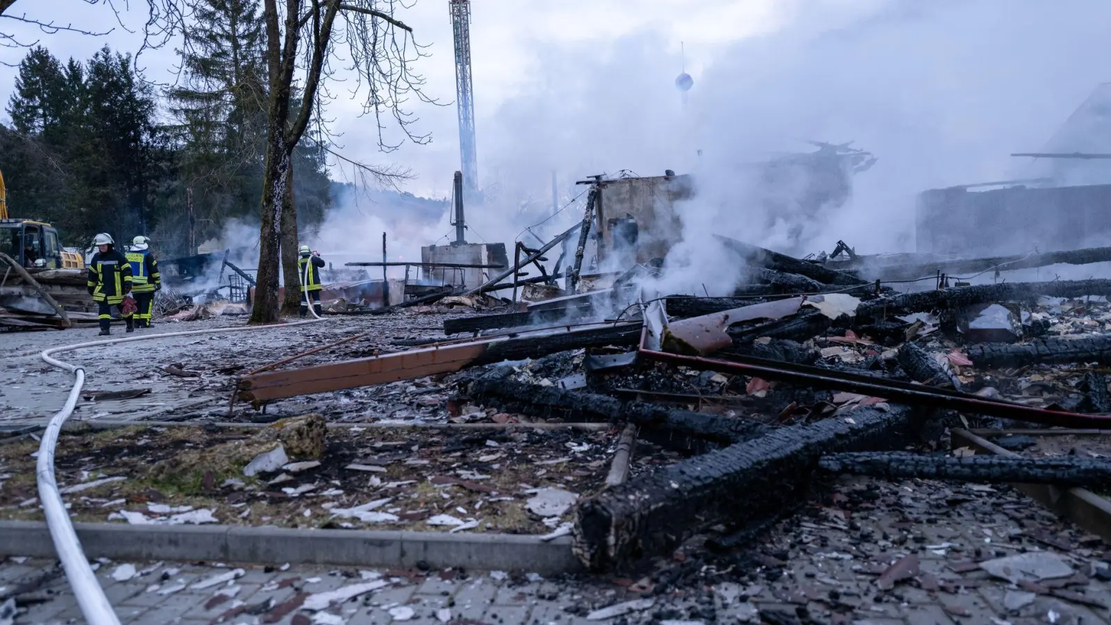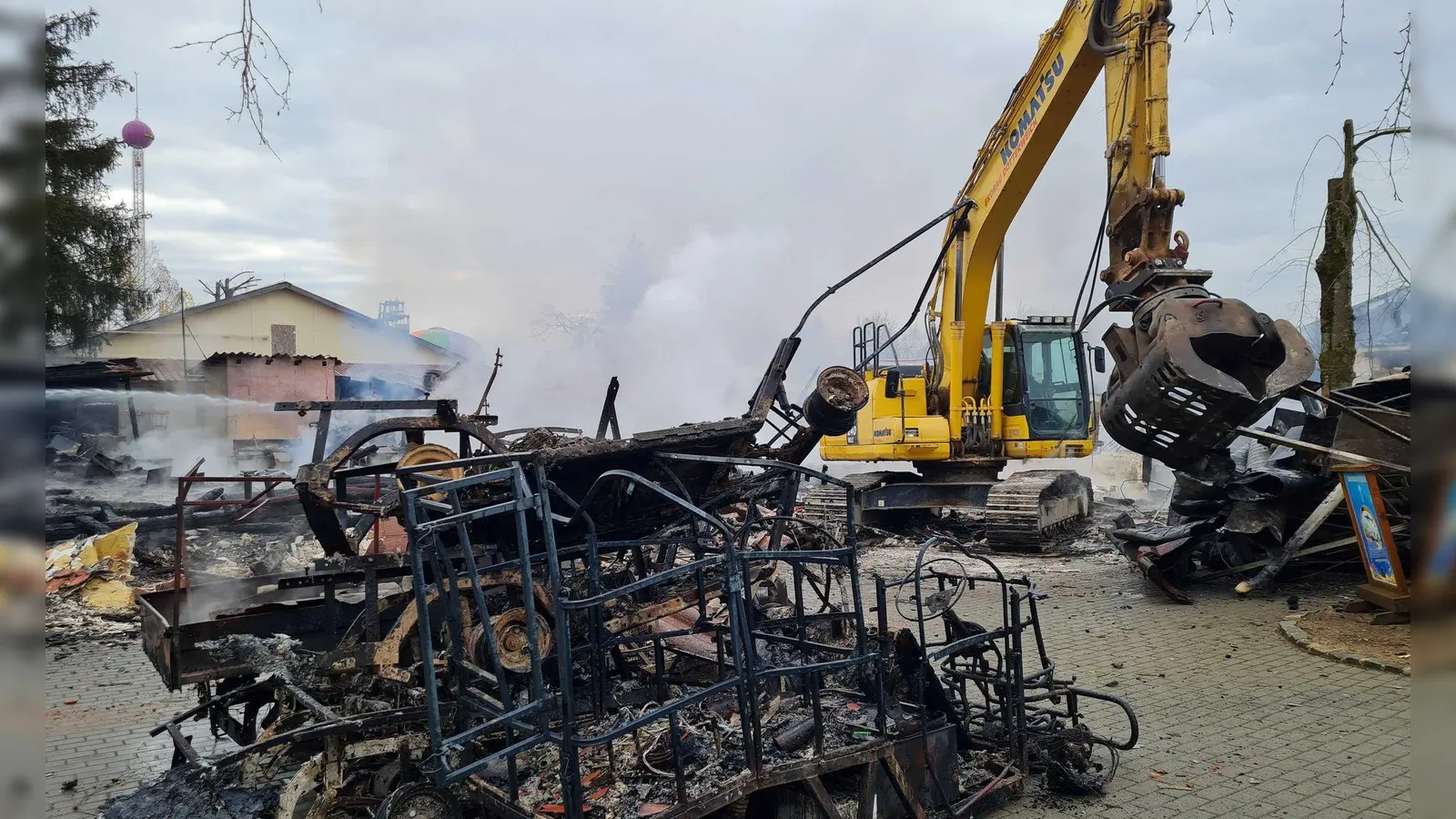 Schnell sei klar gewesen, dass die betroffenen Gebäude, darunter ein Restaurant und ein Kiosk, nicht zu retten gewesen seien. „Die Gebäude waren verloren. Wir haben uns nur noch darauf gestützt, die Nebengebäude zu schützen, was uns auch so weit jetzt gelungen ist“, sagte Hofmann. Das Feuer sei dann rasch unter Kontrolle gewesen, die Nachlöscharbeiten liefen an. Ein Bagger sollte später die Trümmer auseinanderziehen, um Restlöscharbeiten zu ermöglichen.