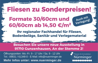 Wer dabei auf Qualität, Fachwissen und persönlichen Service setzt, findet in der Region vielfältige Möglichkeiten – von handwerklichen Projekten bis zu einzigartigen Gebrauchtwaren. Wenn man zum Beispiel sein Bad oder die Küche verschönern möchte, kann bei regionalen Fachbetrieben nicht nur Fliesen zu attraktiven Sonderpreisen entdecken, sondern auch Bodenbeläge, Sanitäranlagen und das passende Verlegematerial.