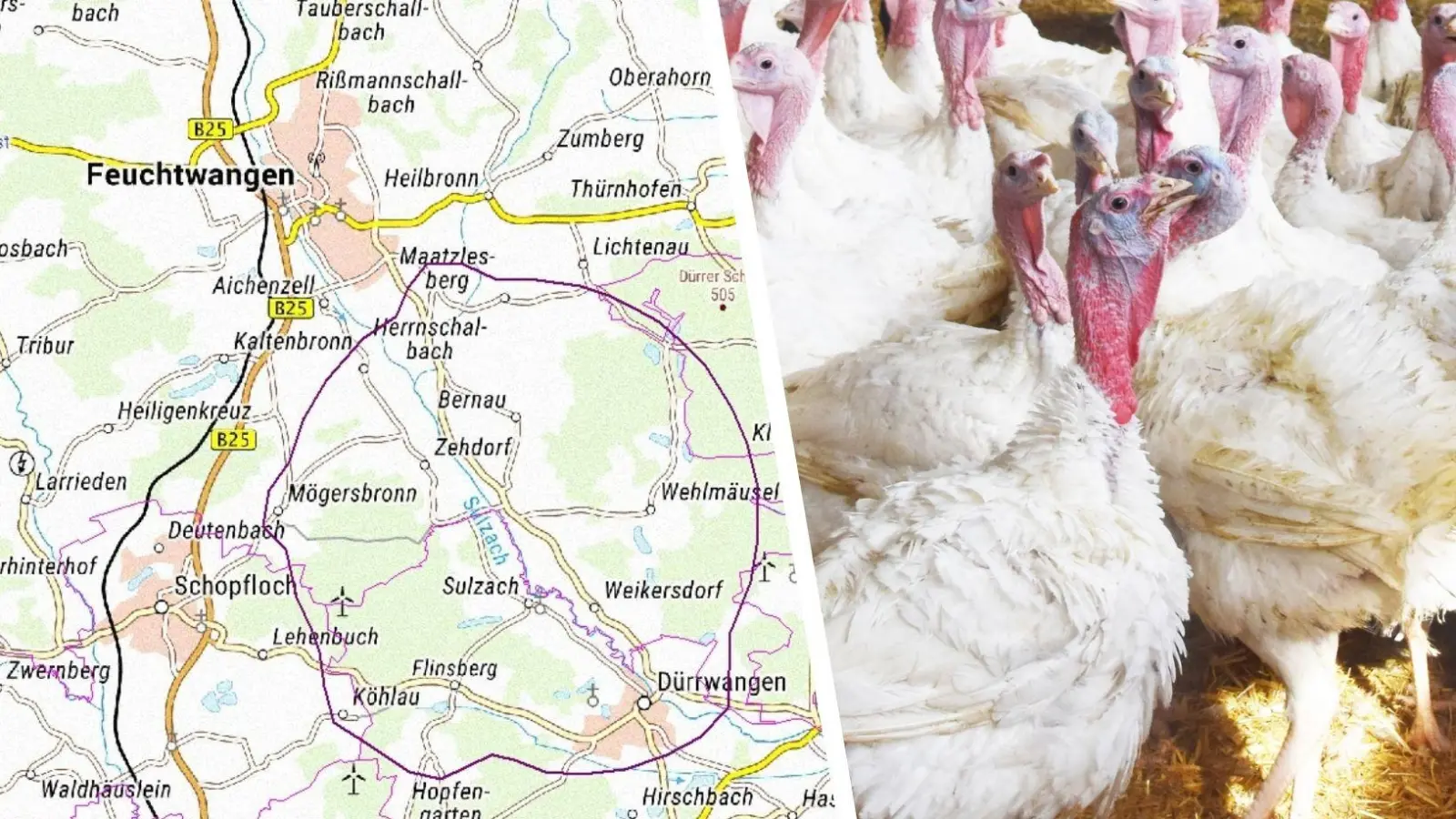 Der Ausbruch der Geflügelpest in einem Betrieb im Bereich der Stadt Feuchtwangen ist amtlich bestätigt. Die gehaltenen 15.000 Mastputen und 15.000 Küken wurden inzwischen getötet, wie das Landratsamt Ansbach am Mittwochnachmittag in einer Pressemitteilung informiert.