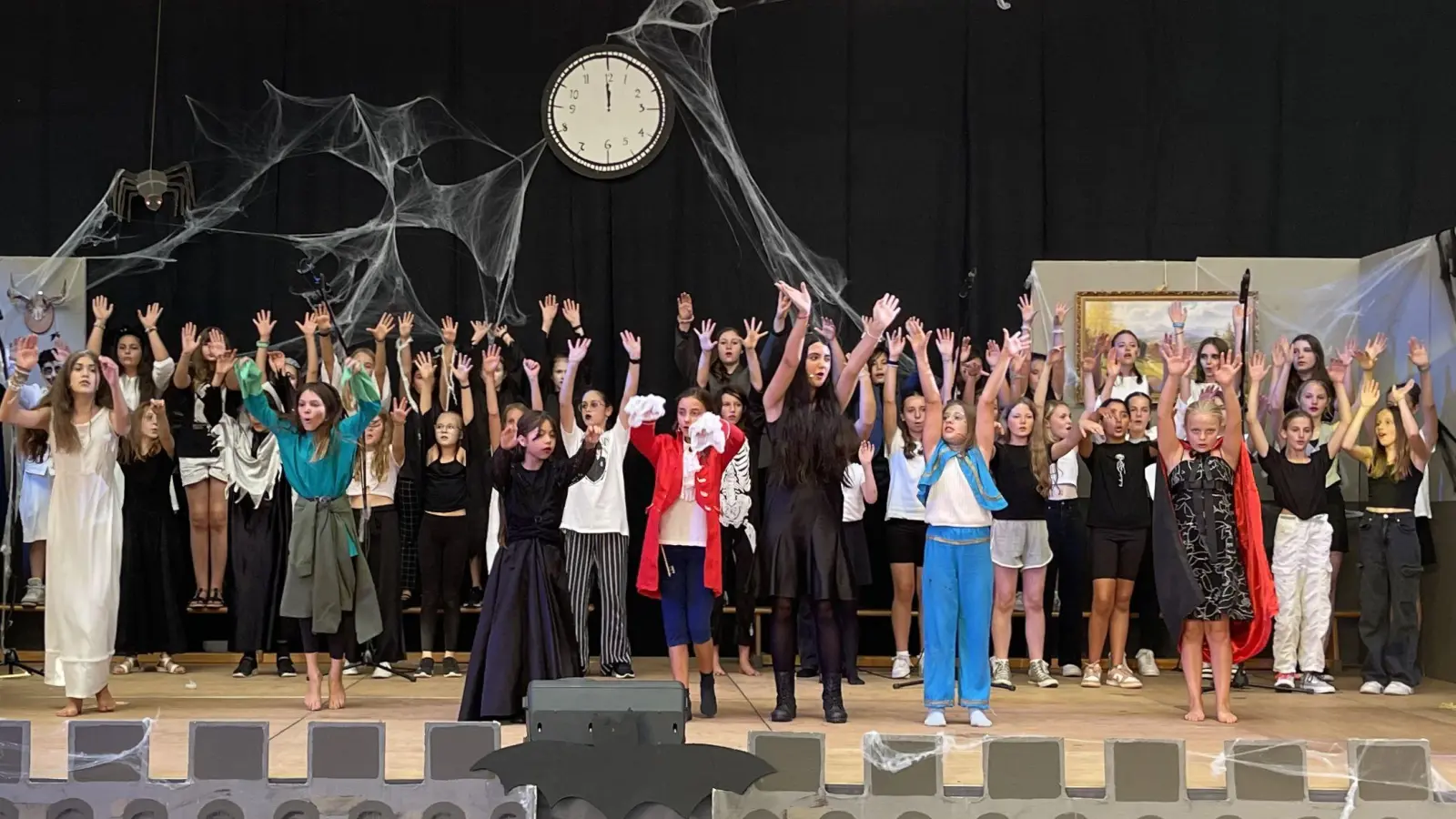 Im Gymnasium Carolinum spukt’s. Nicht im düstren Karzer unter dem dicken Turm, nicht in der historischen Bibliothek mit den uralten Wälzern, sondern in der modernen Turnhalle. Dort hat die Musical-Gruppe der Unterstufe vier Vorstellungen des Grusicals „Geisterstunde auf Schloss Eulenstein“ vor hunderten Zuschauern gegeben.