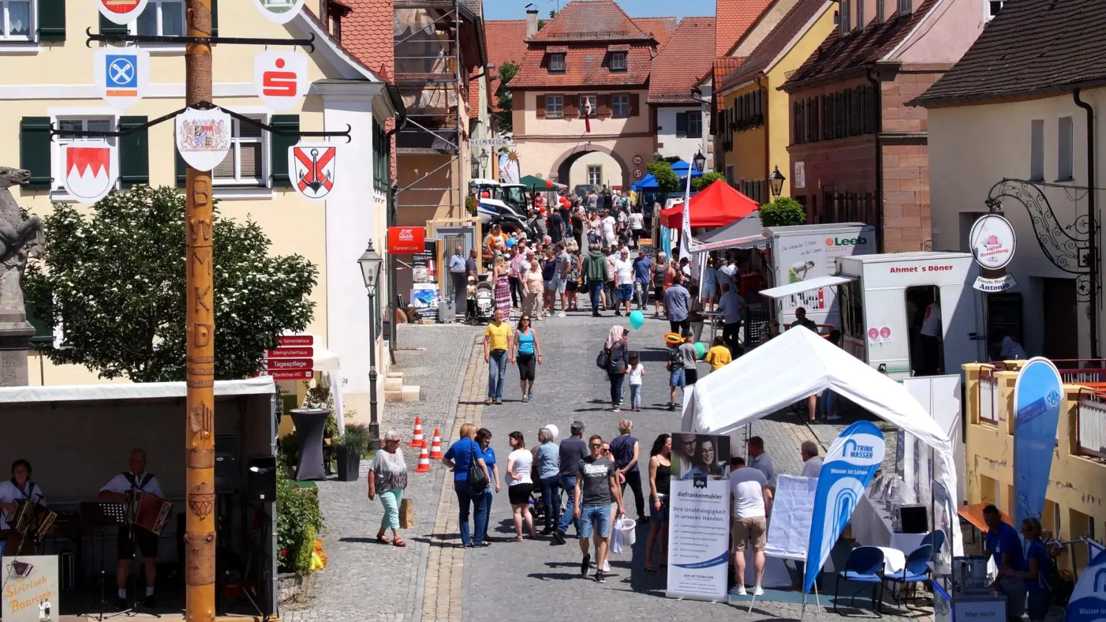 Bummeln Sie nach Lust und Laune durch die Altstadt, informieren Sie sich gezielt zu einzelnen Themen. Am Sonntag, 1. Juni 2025, werden in der Altstadt mehr als 60 Unternehmen aus Handwerk, Handel, Gewerbe und Organisationen ihre Produkte und Dienstleistungen präsentieren. Die Besucher erwartet außerdem ein buntes Rahmenprogramm mit Musik und Tanz auf der Bühne am Marktplatz und im Stadthof. Mit ihrem vielseitigen Angebot verspricht die Gewerbeschau eines der Highlights des Jahres in Merkendorf zu werden.