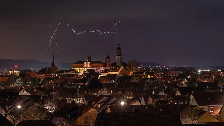 Dunkel wurde es darüber hinaus für einige Minuten in den Markt Bibarter Ortsteilen Altmannshausen, Altenspeckfeld und Enzlar. Dort fiel gegen 20.35 Uhr der Strom aus, wie eine Sprecherin der N-Ergie auf Nachfrage unserer Redaktion berichtet. Betroffen waren auch einige Ortsteile von Iphofen. In der Nähe von Possenheim hatte ein Blitz in eine Freileitung eingeschlagen. In Hellmitzheim und Possenheim war nach Angaben der Sprecherin erst gegen 22.20 Uhr der Strom wieder da. Der Schaden an der Leitung sei noch in der Nacht auf Dienstag repariert worden.