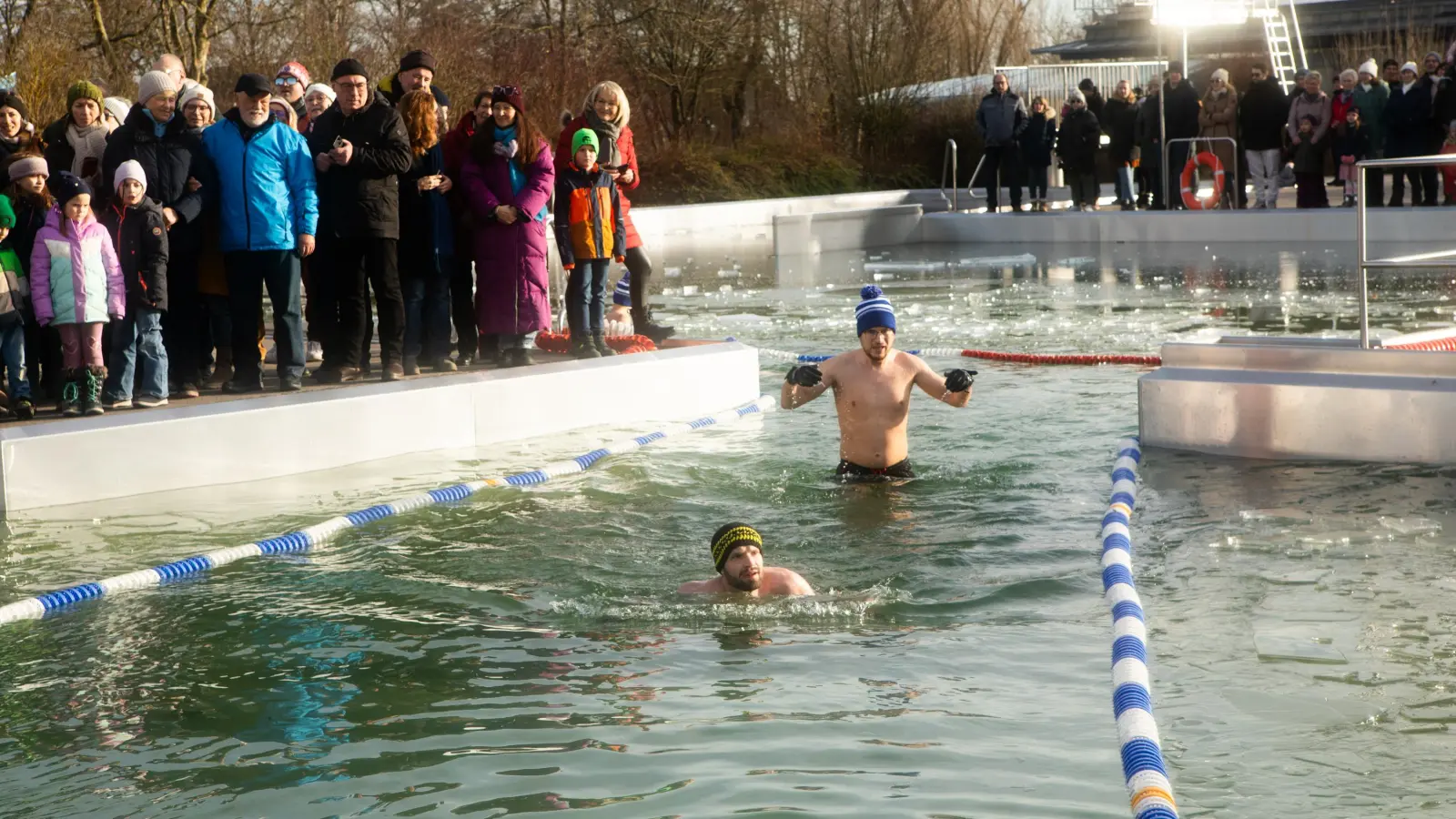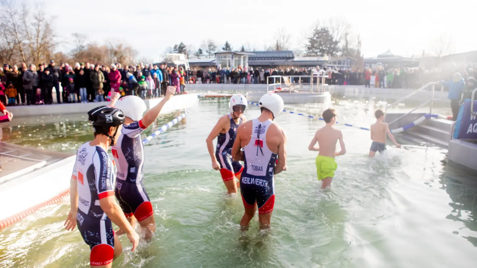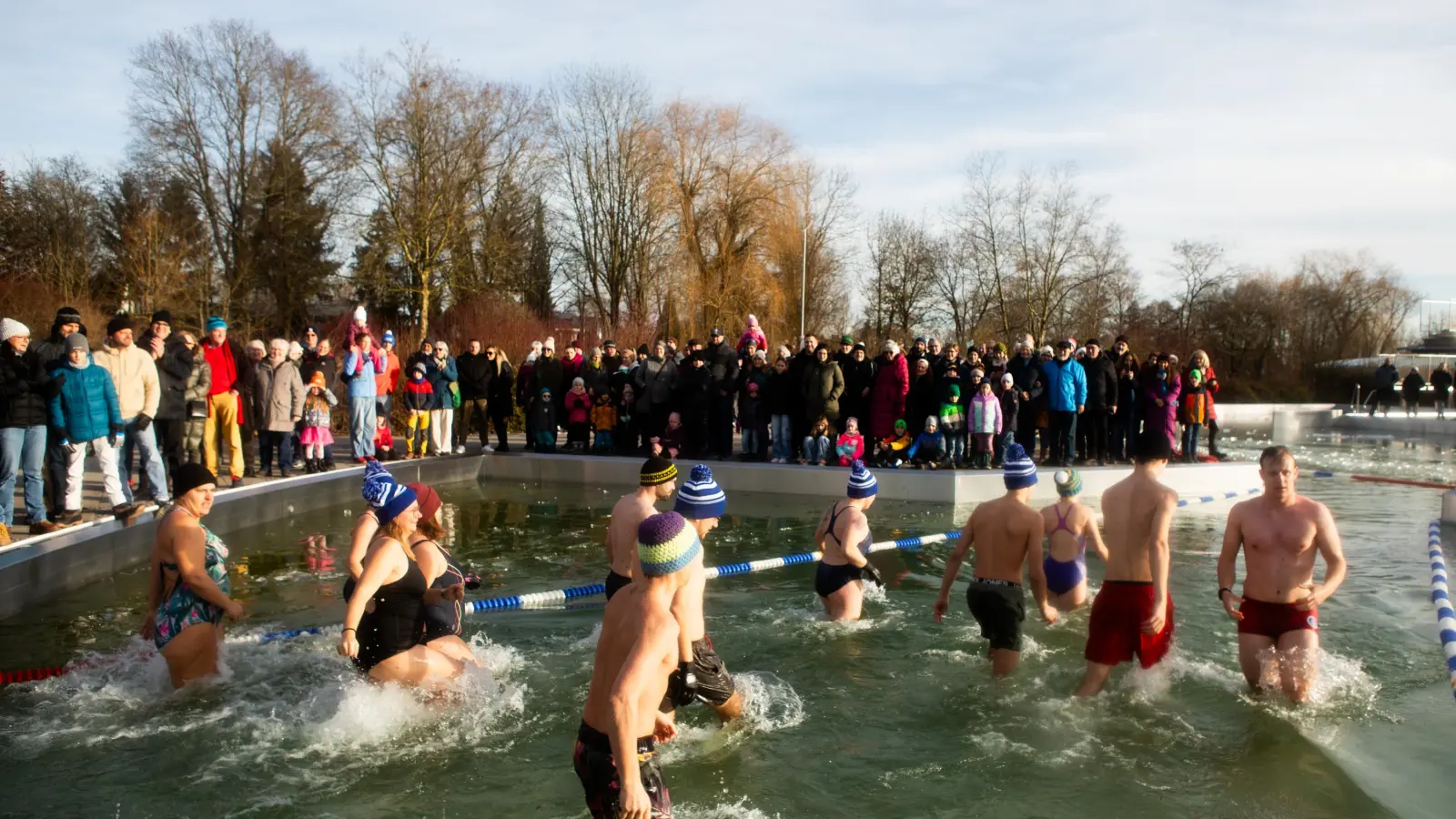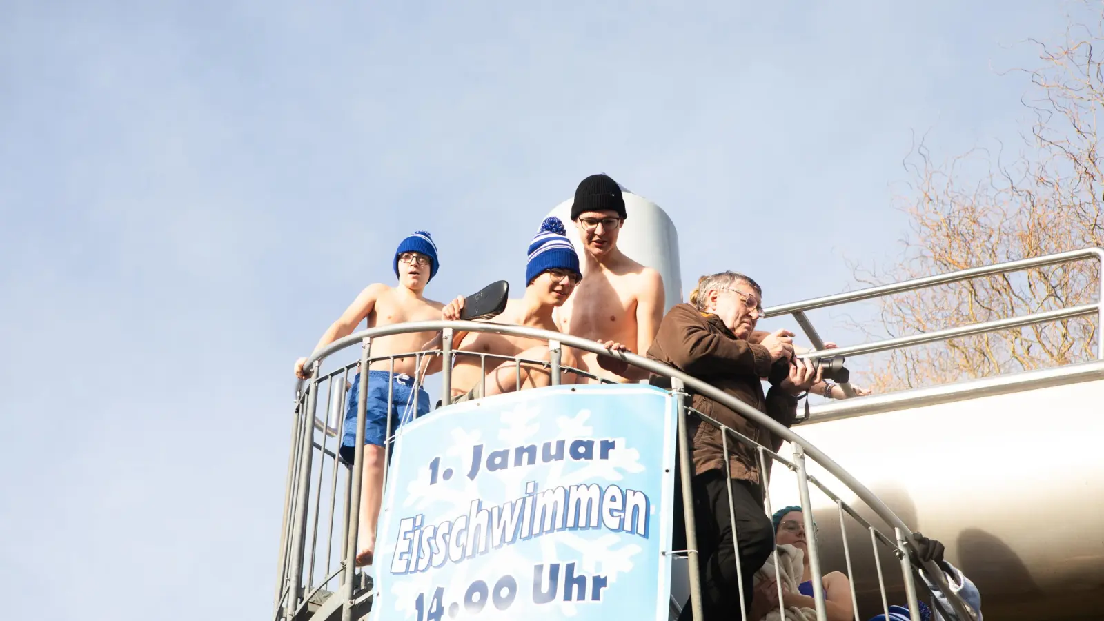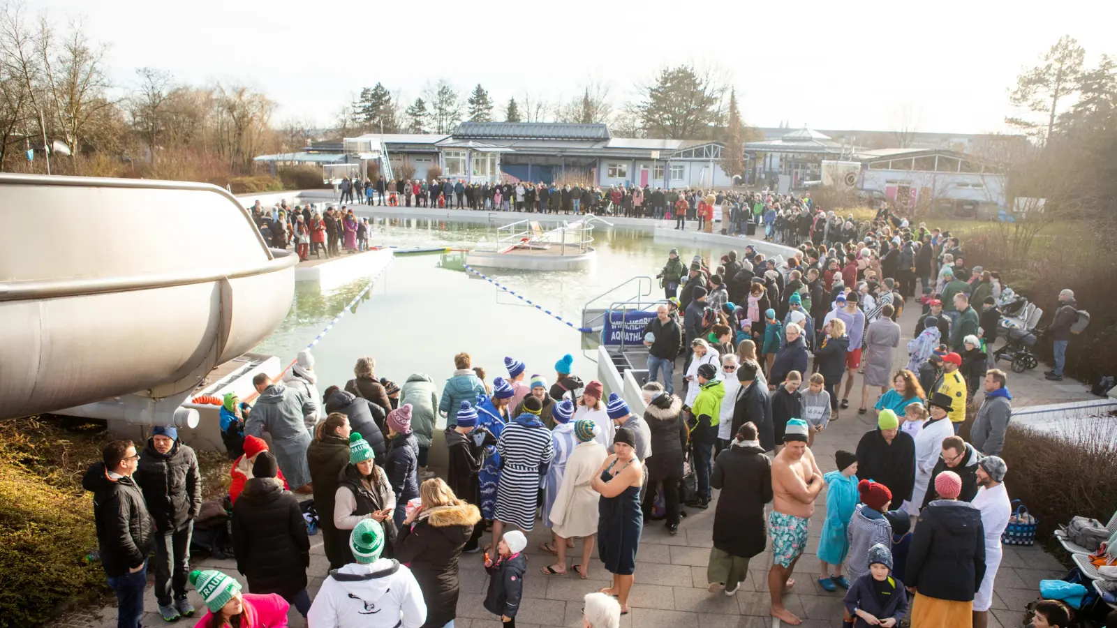 Im Freibad von Herrieden versammelten sich am Mittwoch zahlreiche Bade- und Rutschlustige, die gemeinsam im eiskalten Schwimmbecken das neue Jahr begrüßten. Auch viele Zuschauer ließen sich das Spektakel nicht entgehen. Nach dem kalten Spaß gab es heiße Getränke und Kuchen. Veranstaltet wurde das 16. Neujahrsschwimmen von den Herrieder Aquathleten. Wir waren bei dem feuchtfröhlichen Spaß mit der Kamera dabei.
