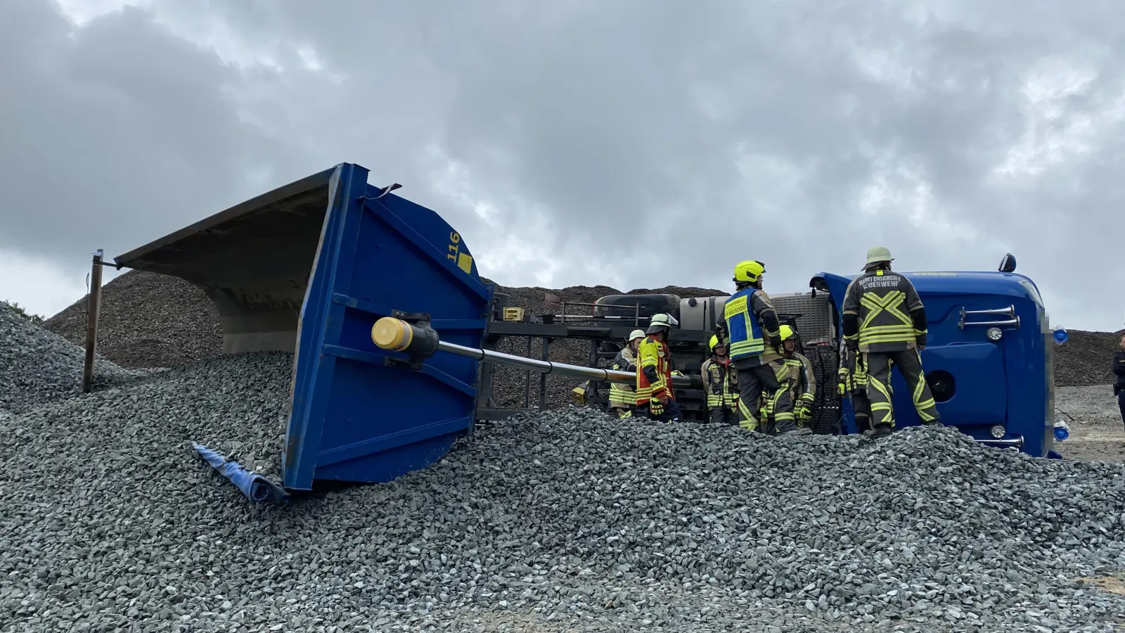 Der Vorfall ereignete sich laut Weiskirchen um kurz nach 13 Uhr südlich des Emskirchener Ortsteils an der Bahnstrecke. Der Lkw, der Schotter auf der DB-Baustelle abliefern wollte, geriet während des Abladens in leichter Hanglage ins Kippen und stürzte um. Der Fahrer, ein 42-Jähriger, wurde dabei zwar nicht eingeklemmt, konnte sich aber dennoch nicht mehr selbstständig aus dem Fahrerhaus befreien.
