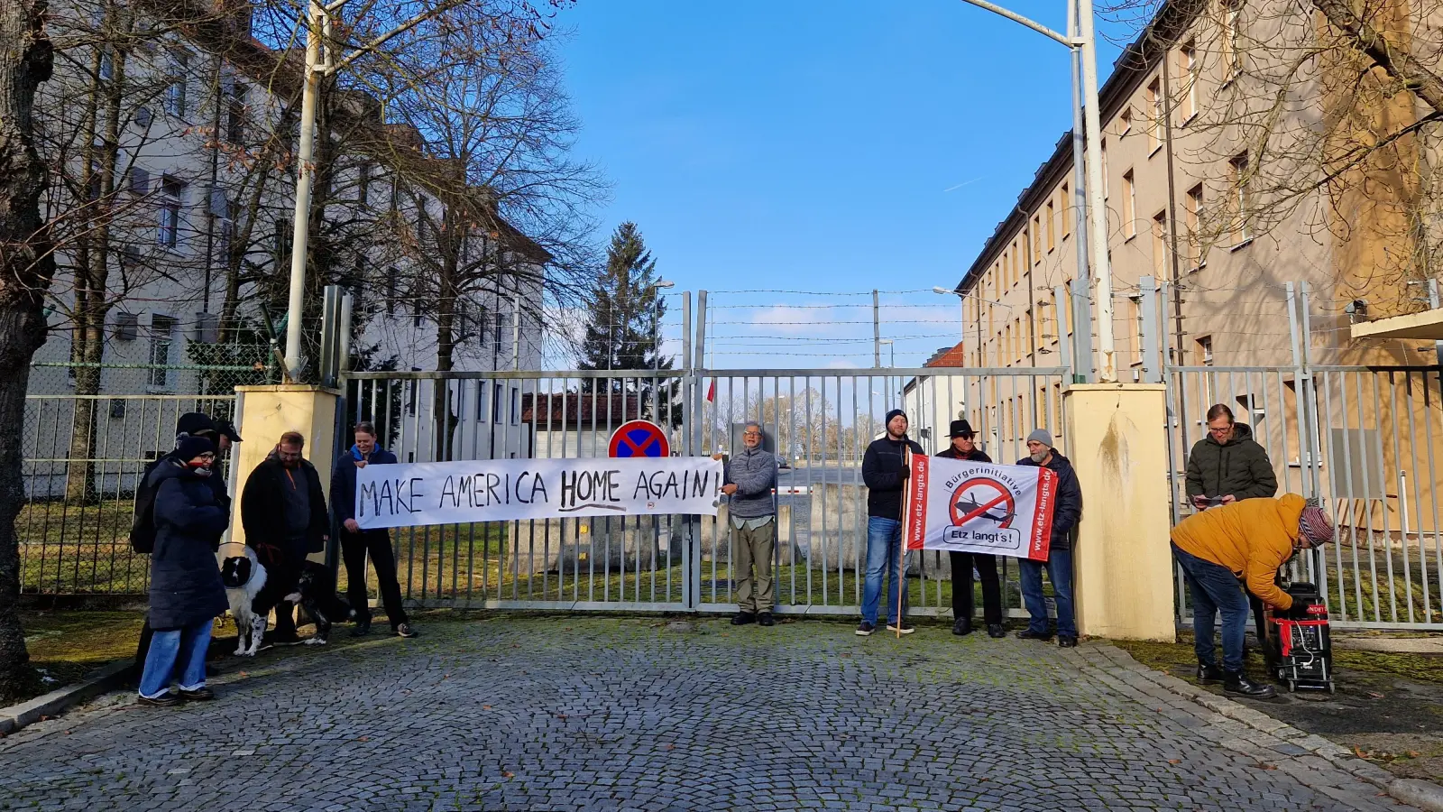 Elf Menschen und ein Hund haben sich am Samstag zu einer Kundgebung vor den Barton Barracks in Ansbach versammelt. Nach Angaben der Verantwortlichen ging es um eine „Emanzipation von der Trump-Regierung“ sowie die „Rückgabe der von der US-Armee genutzten Flächen“.
