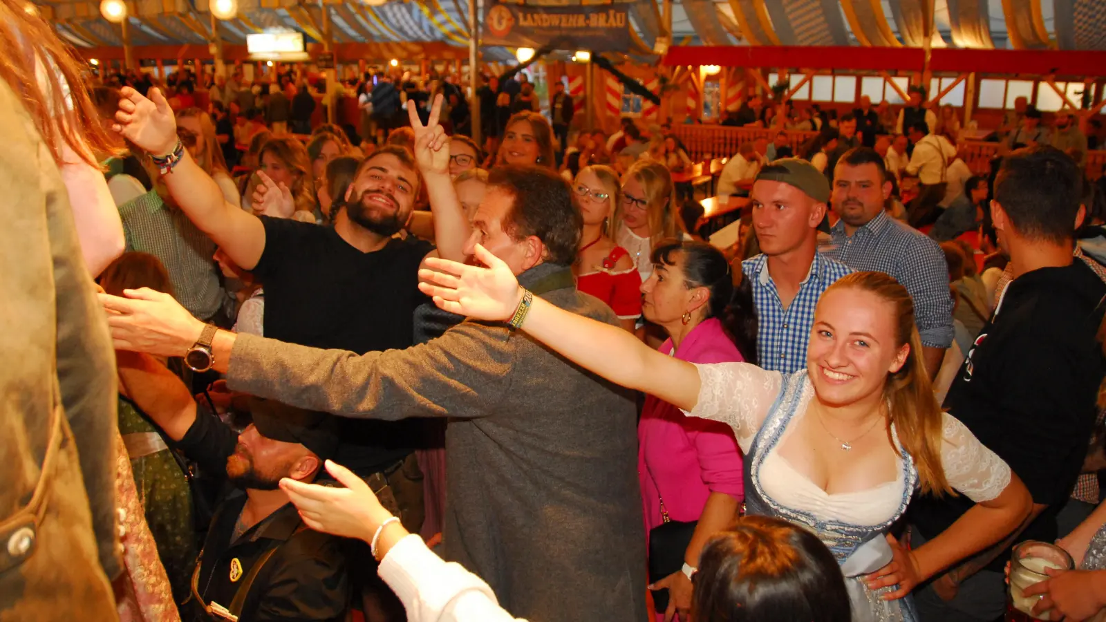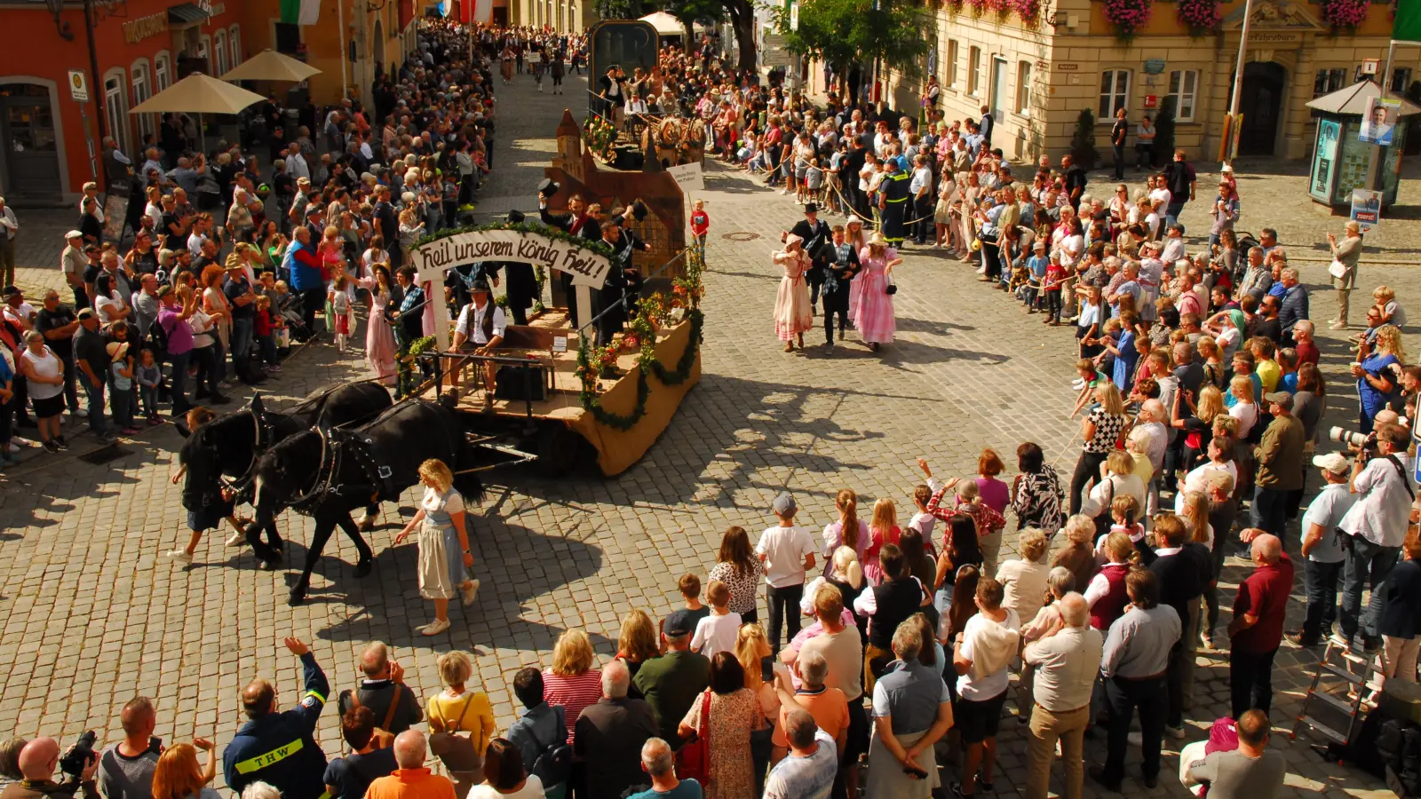 Der Samstag stand traditionell im Zeichen des Schützenumzugs. Nach der Ankunft der Schützen auf dem Marktplatz tanzte Bürgermeister Patrick Ruh mit Oberschützenliesel Sevval Ocak den Pflasterwalzer. Beide absolvierten die Tanzeinlage auf dem unebenen Untergrund und vor zahlreichen Zuschauenden mit Bravour. Für die passende Musik sorgte die Blaskapelle Thürnhofen.