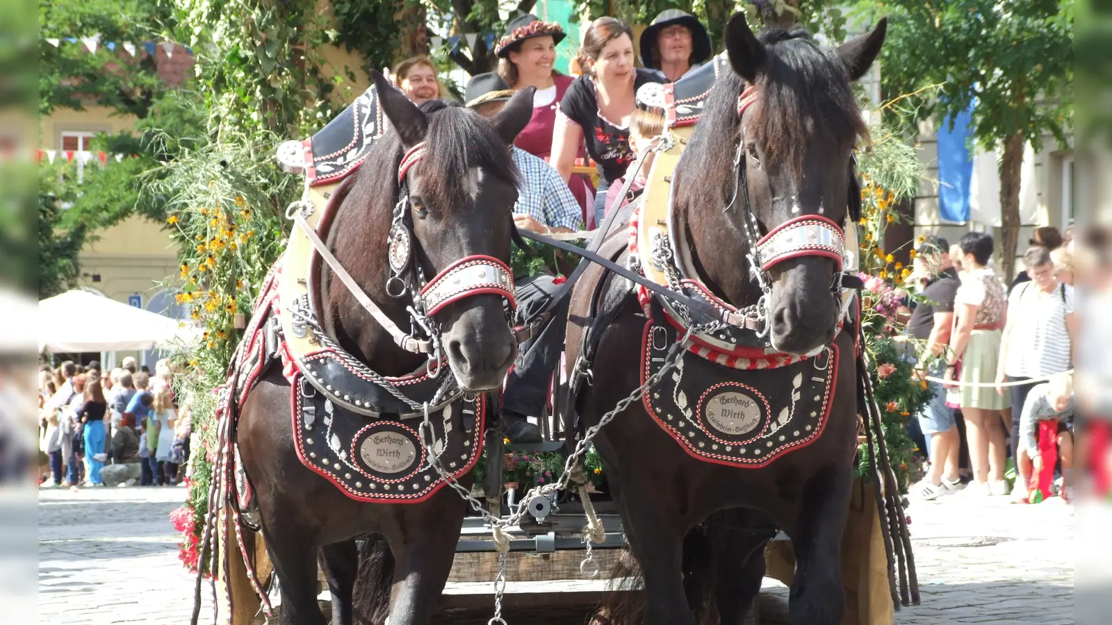 Einen Mooswiesenfestzug, wie man ihn kennt, haben am Sonntag tausende Besucherinnen und Besucher erlebt – mit liebevoll dekorierten Motivwagen, hunderten Beteiligten, prächtig geschmückten Pferden, schmissiger Musik der Kapellen und dem Auto- und Blumenkorso, den der Automobilclub Feuchtwangen im ADAC organisiert hatte.