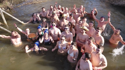 In Oberkemmathen wagten mit 21 so viele Wagemutige wie nie ein Bad im Fluss. Der Erlös ist für soziale Zwecke bestimmt.