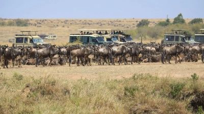Sie sind wieder unterwegs: Die alljährliche Wanderung von mehr als 1,5 Millionen Gnus von der Serengeti in die Masai Mara ist in vollem Gang. Doch es gibt auch Kritik am Verhalten mancher Touristen.