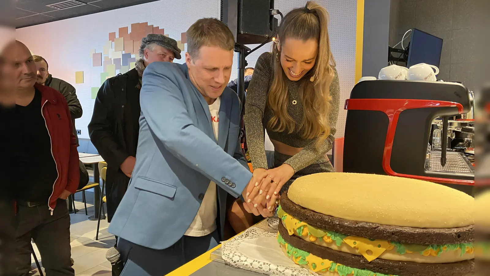 Während mit dem offiziellen Teil der Eröffnung noch die Ankunft von Carpendale abgewartet wurde, nutzte Pocher die Zeit schon einmal, um mit den Anwesenden Selfies zu schießen. Als die Moderatorin eintraf, konnte es dann richtig losgehen. Unter anderem Schnitt das Duo eine gigantische Burger-Torte an.