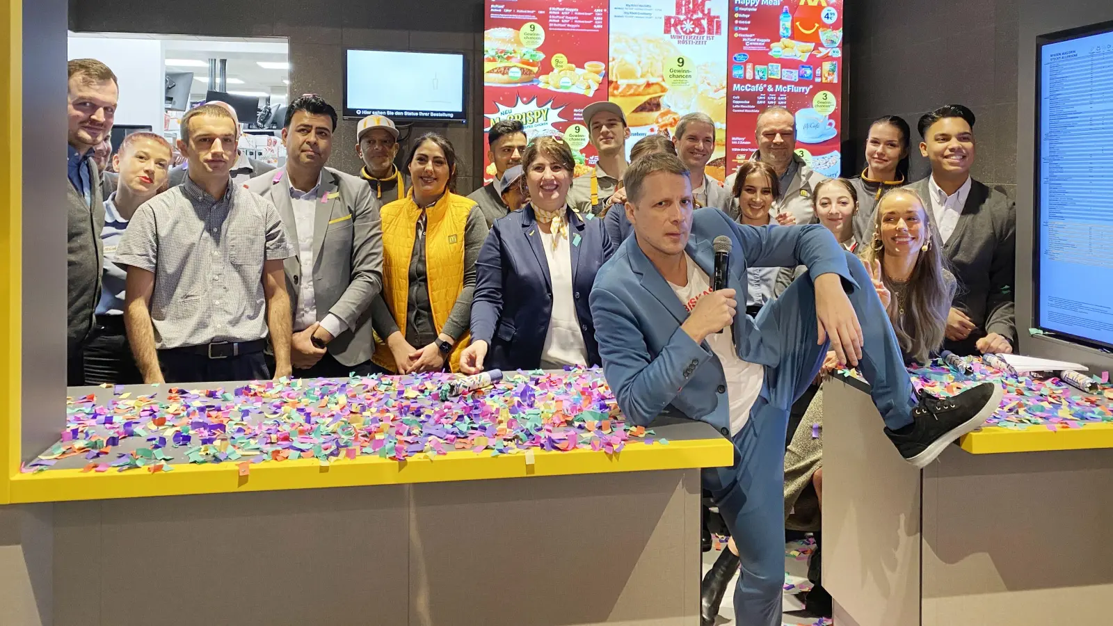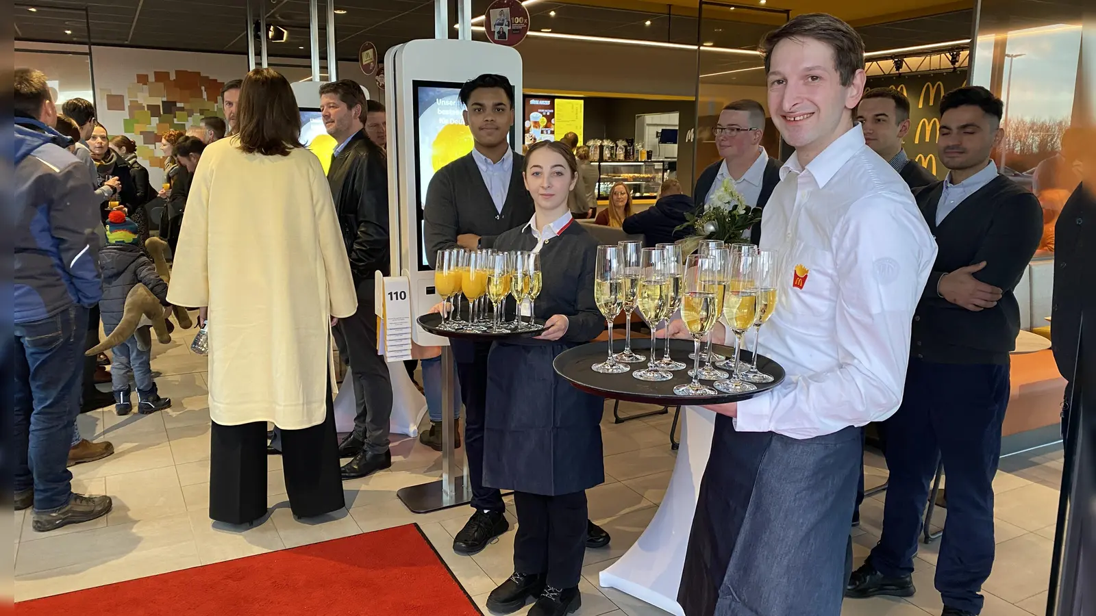 Dafür packte McDonald's denn auch nicht ganz hausübliche Verpflegung auf den Tisch. Für die zwei TV-Sternchen, Rothenburgs OB Dr. Markus Naser und seinen Kollegenkreis gab es Sekt im Glas statt Cola im Pappbecher. Vertreten waren unter anderem auch Archäologen, die zuletzt mit spektakulären Ausgrabungen in der Nachbarschaft aufgewartet hatten. Auch der frühere VIVA-Moderator Mola Adebisi war vor Ort.