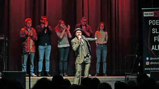 Seine Stimme kennt, wer Bayern 2 hört. Und den Mann dazu? Eher nicht. Und warum reist er mit einem Storch? Der Abend in den Kammerspielen brachte Klarheit.