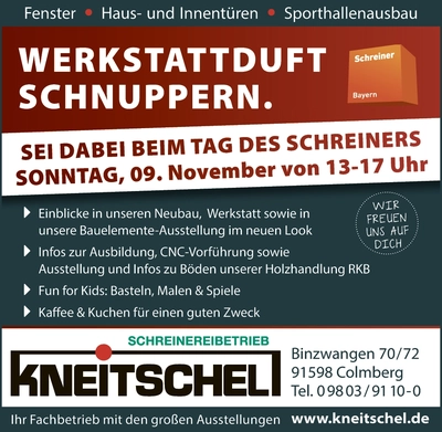 Schreinerei Korder lädt am Donnerstag, den 9. November 2025, Interessierte zum Tag des Schreiners nach Lohr ein.