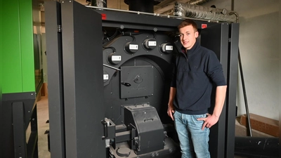 Der 23-jährige Biobauer Leon Reinhardt versorgt in dem Stadtteil von Leutershausen 13 Haushalte mit Wärme aus seiner Hackschnitzelheizung.