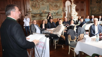 Waren von der Straße auf die Schiene: Der bayerische Verkehrsminister Christian Bernreiter übergab den offiziellen Förderbescheid.
