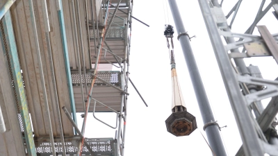 Das instand gesetzte Objekt des Jakobus-Kirchturms wurde mit einem Kran aufgesetzt. Ein Ende der aufwendigen Bauarbeiten ist absehbar.