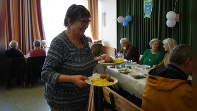 Noch bis Ende März kommen jeden Donnerstag rund 120 Menschen für ein gemeinsames Mittagessen zusammen. Bisweilen wird es eng im Saal.