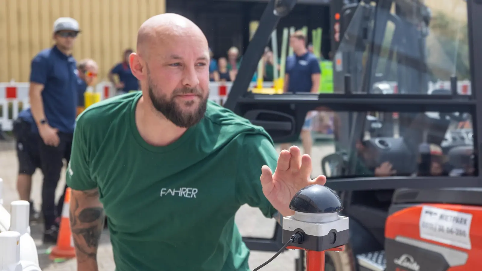 Präzise, aber schnell müssen mit der Gabel des Staplers ein Stahlring über den heißen Draht geführt und Formen wie beim Puzzle richtig positioniert werden. Erfolgreich haben drei Mitarbeiter von Helu Kabel aus Windsbach die Vorrunde im Staplerfahren gemeistert. Als Sieger haben sie sich für die internationale Meisterschaft in Aschaffenburg qualifiziert.