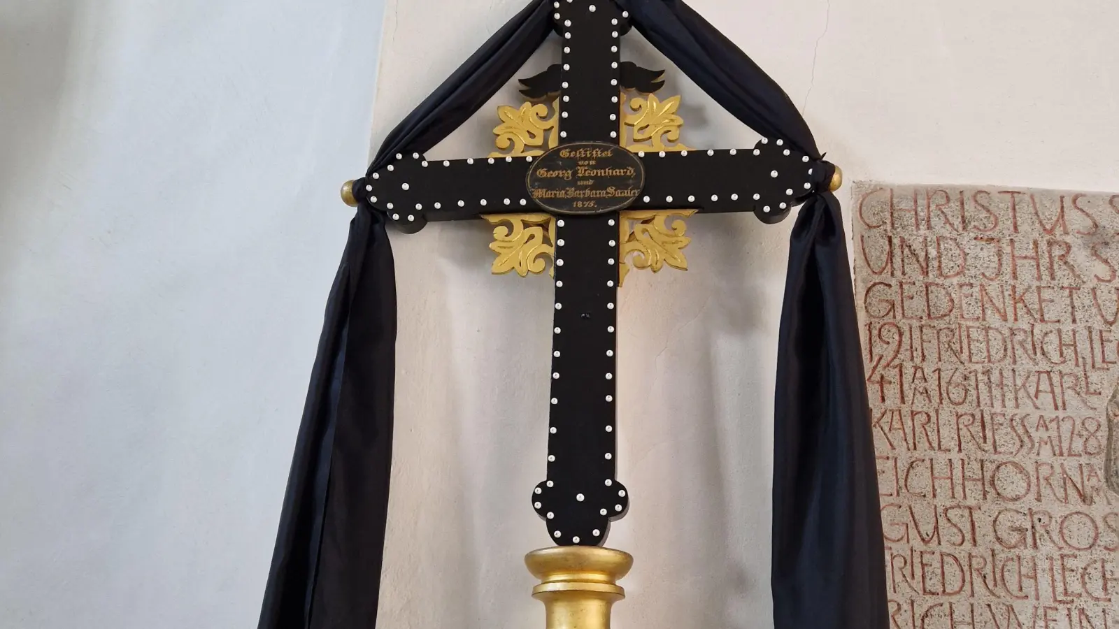 Über ein restauriertes Vortragekreuz aus dem 19. Jahrhundert freut sich die evangelische Kirchengemeinde Untermichelbach im Landkreis Ansbach. Das Kruzifix zeichnet sich vor allem durch viele kleine Porzellanperlen aus.