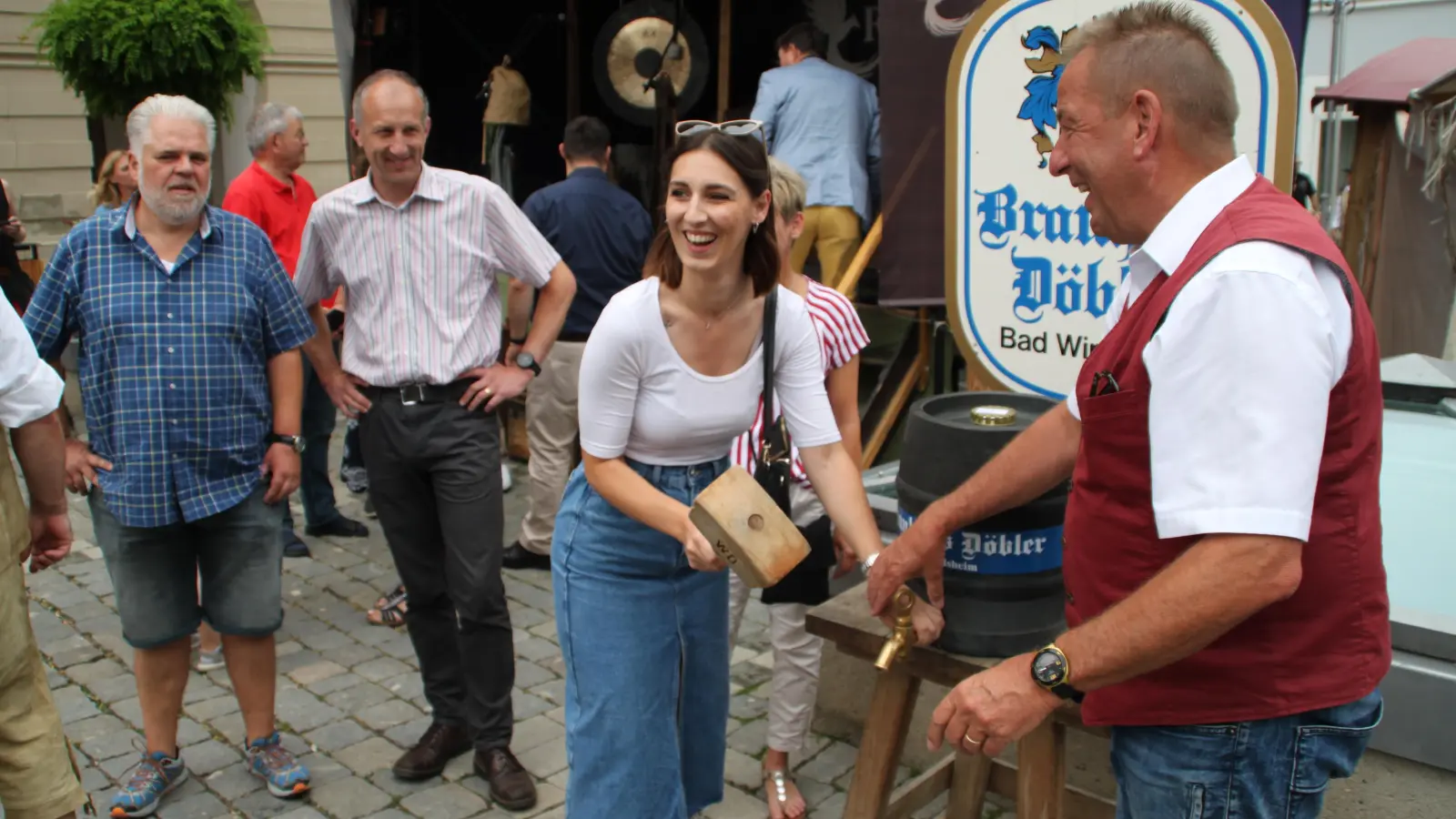 Das schöne, nicht zu heiße Wetter lockte zum Kiliani-Altstadtfest zahlreiche Gäste in die Stadt. Besonders zum Umzug der teilnehmenden Vereine und Gruppen am Samstag säumten viele Gäste die Straßen und Gassen. Den offiziellen Bieranstich auf dem Marktplatz meisterte Bürgermeister Jürgen Heckel mit zwei Schlägen souverän. Am Sonntag kamen dann noch die Besucher des Tags der Franken im Freilandmuseum dazu.