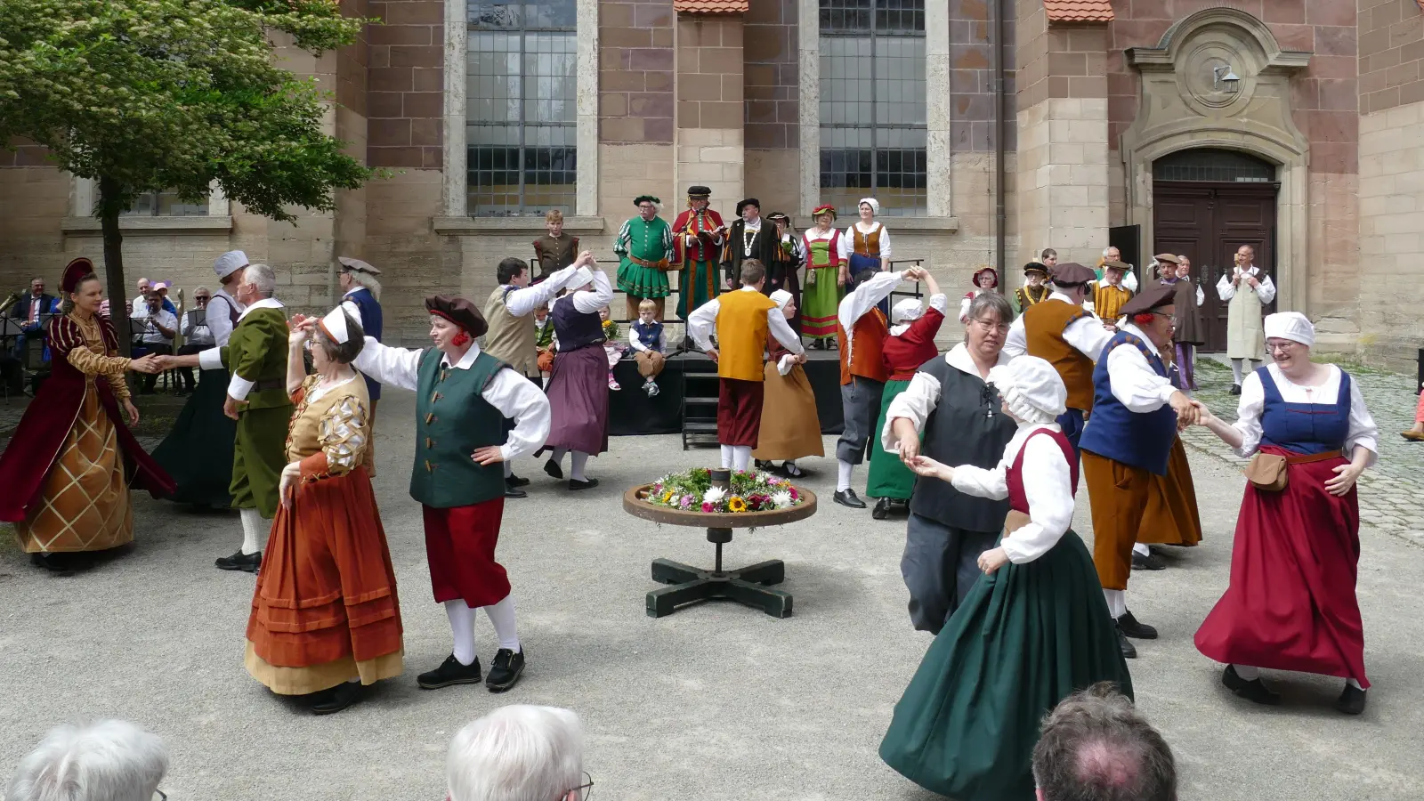 Seit nunmehr 75 Jahren begeistert der historische Wagnertanz die Bürger der Stadt Bad Windsheim und deren Gäste aus Nah und Fern. Die erste von zwei Aufführungen des Festspiels im Jubiläumsjahr 2024, fand, der Tradition folgend, am Pfingstsonntag statt.
