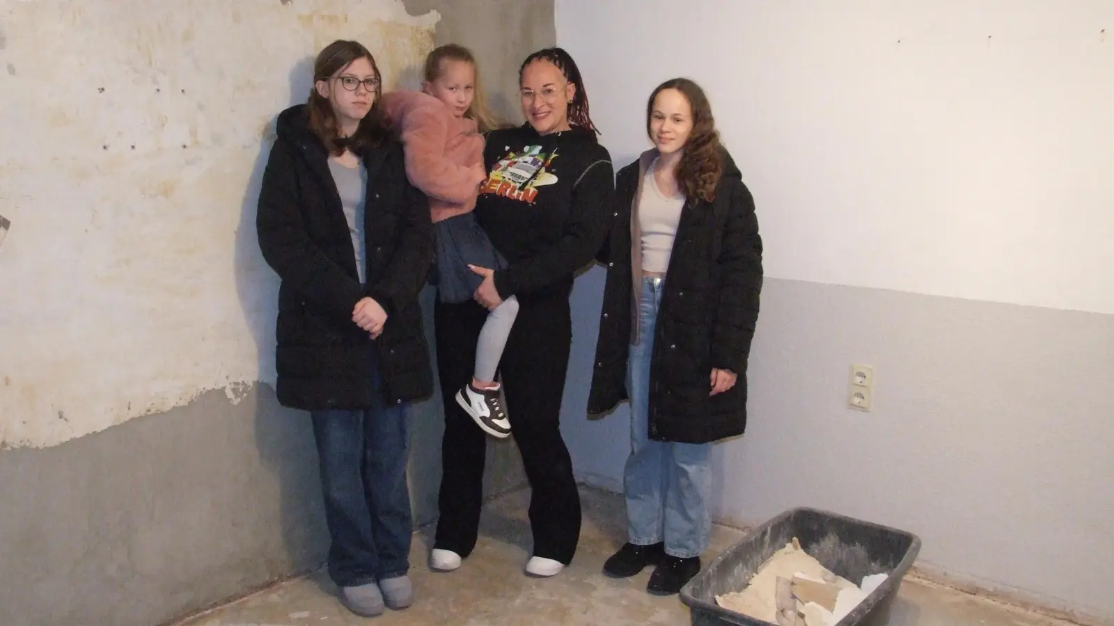 Viola Kühlwein steht im Flur der Wohnung, die bis zum 7. Dezember das Zuhause von ihr und ihren drei Töchtern war. Nach einem massiven Wasserrohrbruch sind die Räumlichkeiten derzeit nicht bewohnbar. Ob sie es je wieder sein werden, ist noch unklar.