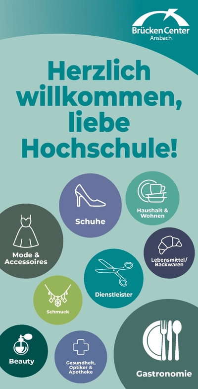 Die Hochschule Ansbach expandiert auf außergewöhnliche Weise. Im benachbarten Brücken-Center bezieht sie auf rund 5.000 Quadratmetern völlig neugestaltete Lehr-, Lern- und Laborräume und verbindet sich damit noch stärker mit der Stadt Ansbach – sichtbar in der neuen Glasbrücke zwischen dem Zentralcampus und dem Brücken-Center.