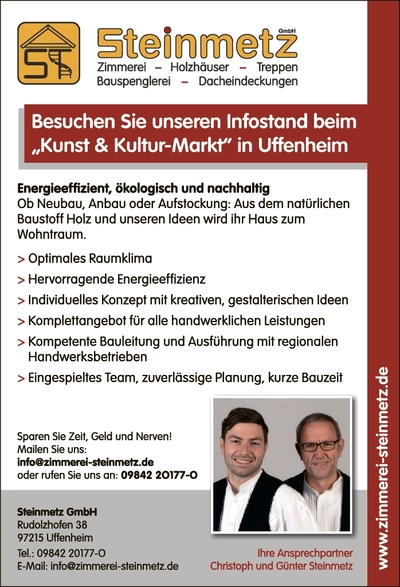 Dabei verarbeiten Zimmerer Holz in Form von Stäben (sog. Kantholz, das massiv oder verleimt ist) oder Platten (OSB-Platten, Sperrholzplatten). Holz ist der einzig nachwachsende Baustoff. Holzprodukte benötigen wenig Energie bei ihrer Herstellung und Verarbeitung. Holzprodukte lassen sich weiterverwenden. Und, Holz hat hervorragende Eigenschaften bei Wärmeschutz, Schallschutz und Brandschutz.