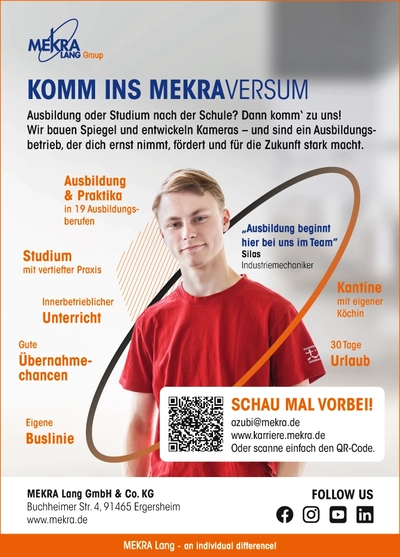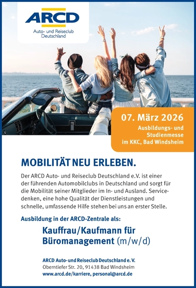 Am Samstag, 7. März 2026, findet im Bad Windsheimer Kur- und Kongress-Center (KKC) eine von der Kur-, Kongress- und Touristik GmbH (KKT) gemeinsam mit örtlichen Schulen initiierte Ausbildungs- und Studienmesse statt.